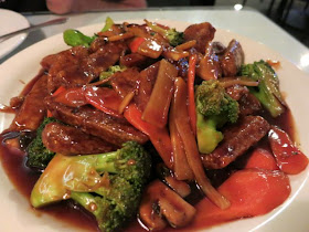 Zach went with the Orange Beef, which was also soy protein in a brown subtle orange-flavored sauce with carrots, mushrooms, bamboo, and broccoli.